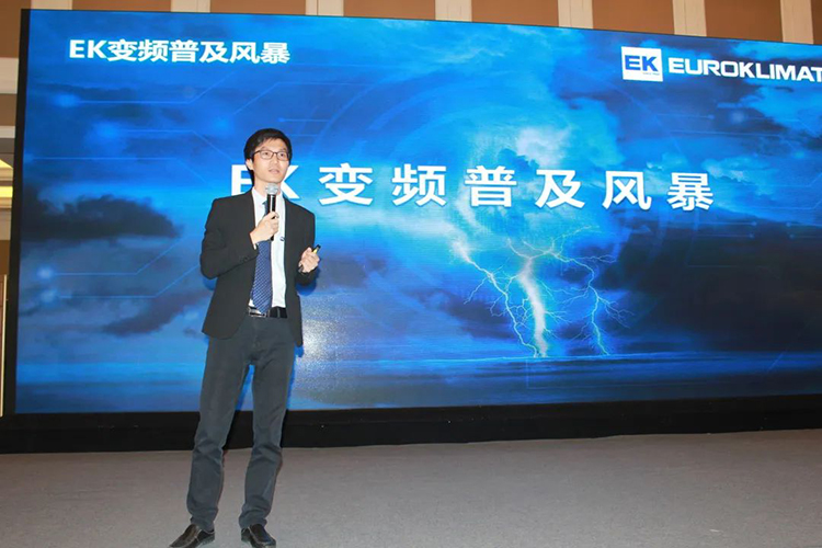 會(huì)議現(xiàn)場,EK空調(diào)產(chǎn)品經(jīng)理陳旭金和現(xiàn)場嘉賓分享了EK變頻模塊機(jī)、全熱回收、“四管制”風(fēng)冷冷熱水機(jī)組、云智慧高效集成冷站等解決方案,以及它們在公建、酒店、醫(yī)療、工業(yè)等領(lǐng)域的應(yīng)用。陳旭金介紹,在國家“雙碳”目標(biāo)下,擁有全變頻技術(shù)、超寬運(yùn)行范圍、IPLV遠(yuǎn)超國家一級能效的變頻模塊機(jī)將成為工程商的下一桶“金”,未來可期。