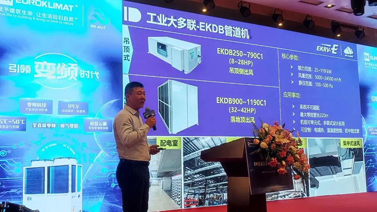 EK空調(diào)產(chǎn)品經(jīng)理丁兆宣以《EK工業(yè)大多聯(lián)產(chǎn)品介紹及應(yīng)用》為主題進(jìn)行產(chǎn)品宣講
