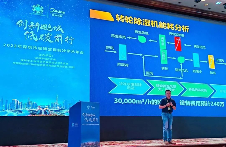 年會現場,EK空調中國區市場營銷總監兼IECD事業部總監王健以《制冷空調系統在工業環境控制領域的需求和解決方案》為主題發表演講,和現場嘉賓詳細介紹了ADR-DRY一體化高效轉輪除濕機、云智慧高效集成冷站、“四管制”冷熱平衡機組、工業多聯等EK核心低碳產品和解決方案,以及它們在各工業細分領域的應用和案例。