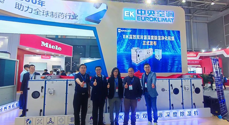 本屆展會,EK以制藥廠房潔凈度、溫濕度需求以及高能耗痛點為核心,針對制藥車間、藥品倉儲、實驗室等不同場景提供低碳化、智能化的專業空氣解決方案。EK高效雙冷源深度除濕凈化機組作為本次參展的新品,在本屆藥機展隆重揭幕。