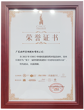 榮膺“中國醫院建設十佳建筑設備類供應商”