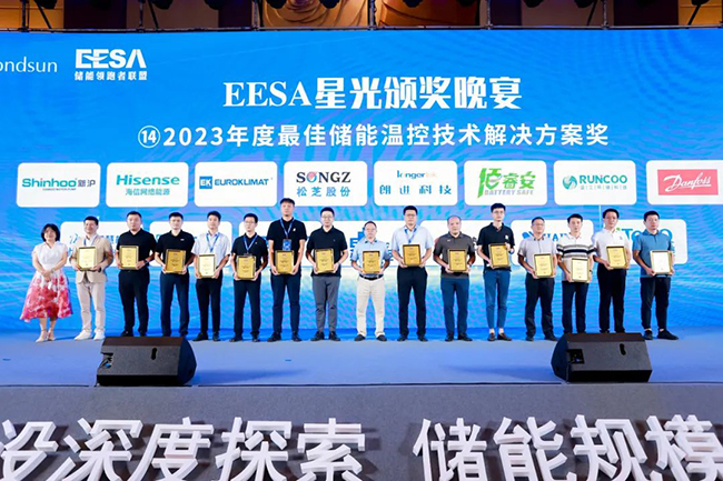 榮譽見證,砥礪向前。8月29日,EESA星光頒獎晚宴——“中天&貝盛儲能之夜”在蘇州金雞湖凱賓斯基大酒店隆重舉行。EK受邀出席并榮膺“2023年度最佳儲能溫控技術解決方案獎”。