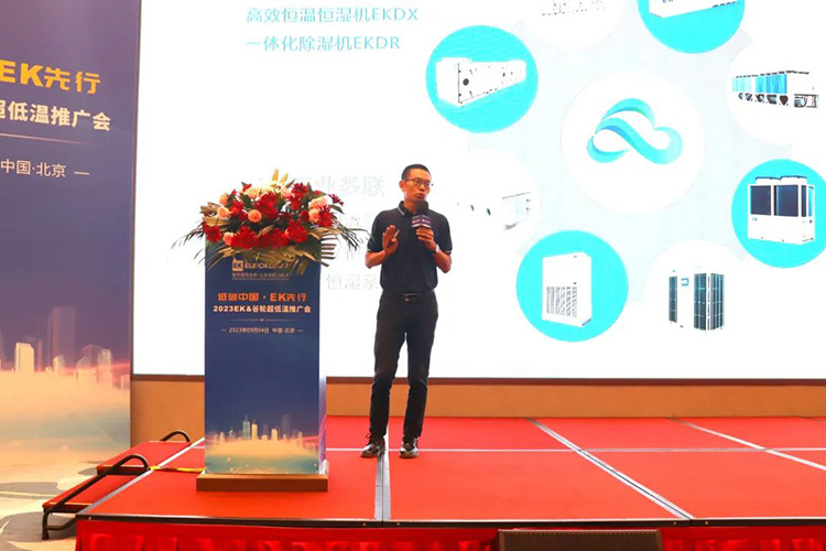 隨后,EK空調北京辦事處總經理鄒林分享了北京辦事處上半年的銷售業績,在工業、醫療、數據中心等領域的用戶分布情況,以及EK在新能源、新基建、民生等領域的解決方案和核心產品。