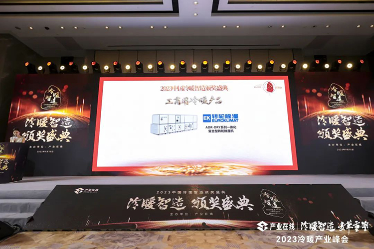 9月15日,2023中國“冷暖智造”頒獎盛典在上海隆重舉行。EK ADR-DRY系列一體化復合型轉(zhuǎn)輪除濕機憑借技術(shù)創(chuàng)新、高效節(jié)能等優(yōu)勢,榮獲“冷暖智造”產(chǎn)品大獎!