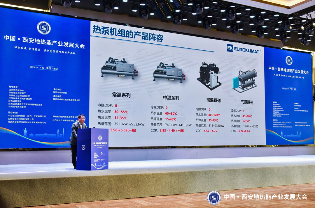 此次大會匯聚地熱能領域的專家學者及行業精英,共同探討地熱能產業的發展趨勢與創新技術。作為節能低碳能源系統領域的專家,EK空調積極亮相本次大會并發表專題報告,全面展示EK寬溫區水(地)源熱泵產品系列,贏得廣泛關注與贊譽。