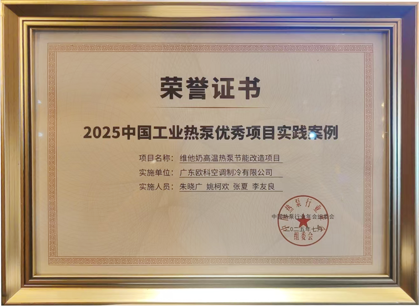 大會舉辦工業應用、農業應用優秀品牌2025中國熱泵行業表彰儀式,EK工業空調實施的維他奶高溫熱泵節能改造項目被評為“2025中國工業熱泵優秀項目實踐案例”。
