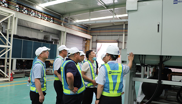 5月19日,“EK2021-千商活動”新疆辦首批經銷商嘉賓蒞臨EK南方基地參觀指導。EK銷售總監彭健明和EK市場部經理吳明全對嘉賓們的到來表示熱烈歡迎和感謝,并就未來合作展開深入探討。吳明全介紹了EK的品牌實力、競爭優勢、經營方式和與商家合作理念。EK工程師分別就EK空氣處理機組、模塊機組和多聯機產品做了詳細介紹,并和大家分享了EK空調在新疆地區的經典應用案例。EK四川項目辦事處銷售經理趙建新和EK新疆辦事處銷售經理陳立陪同參觀。